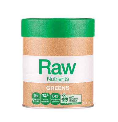 Amazonia Raw Prebiotic Greens is a Certified Organic formula containing several types of alkaline chlorophyll, which may assist detoxification processes and support energy production. This highly nutritious blend combines nutrient-dense sprouts, leaves, juices, grasses, algae, herbs, over 74 trace minerals and prebiotics to support vitality, in a formula designed for optimal absorption. Delicious mixed with water, coconut water or other non-dairy milk substitutes. It can also be sprinkled onto cereals, smoothies, or yogurt.