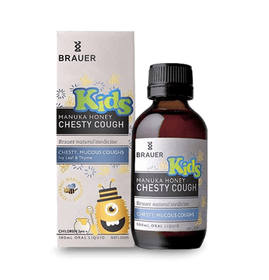 Brauer Kids Manuka Honey Chesty Cough contains carefully selected herbal ingredients to help relieve chesty, mucous coughs in children. This natural cough remedy is enriched with Manuka honey and is free from gluten, lactose, artificial colours and flavours.