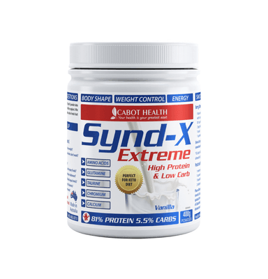Cabot Health Synd X Low Carb High Protn Powder Vanilla 400g. Very high in protein and very low in carbohydrates, this powder is perfect to assist in any weight loss program. Whey protein aids in muscle repair and helps to increase muscle mass. Glutamine, taurine and chromium have been added to assist the body with the correct utilisation of glucose and to aid in the health of the liver. This is an ideal formulation for people with blood sugar fluctuations. Each gram of Synd-X powder will provide 420mg of essential amino acids and protein fractions. Amino acids are essential for stimulating muscle growth, supportin the nervous system and repairing tissues and organs. Essential amino acids cannot be produced by the body and must be obtained through diet.