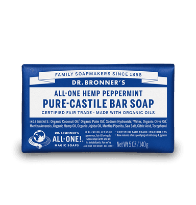 Dr. Bronner's Pure-Castile Bar Soaps are biodegradable-vegan, gentle and versatile, good for washing body, face or hair! Enjoy only 2 cosmetics, enough sleep & Dr. Bronner's Magic Soaps to clean-body-mind-soul-spirit instantly uniting One! All-One!!