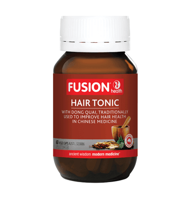 Fusion Hair Tonic includes: Biota, traditionally used to decrease hair loss and improve hair growth in traditional Chinese medicine (TCM) Biota is also traditionally used to help maintain healthy hair follicles and to relieve scalp irritation by cooling blood heat in TCM An increased dose of dong quai, which is traditionally used as a blood tonic that improves hair health in TCM Plus the traditional Chinese herbs rehmannia root, white peony, Chinese licorice, cuscuta and Szechuan lovage