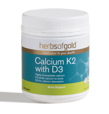 Herbs of Gold Calcium K2 with D3 is an innovative calcium supplement, specifically formulated with menaquinone 7 (vitamin K2) and vitamin D3 for optimal bone health