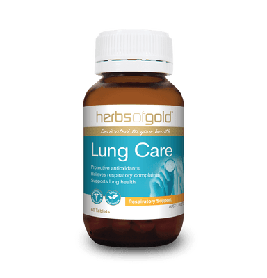 Herbs of Gold Lung Care is specifically formulated with traditional herbs and nutrients to support the healthy function of the lung, respiratory and immune systems. These traditionally used herbs act as expectorants to relieve respiratory catarrh, cough symptoms and clear mucus from the respiratory tract. Lung Care contains antioxidant vitamins C and E, and Selenium to protect the lungs and respiratory tract from harmful toxins, such as cigarette smoke and pollution. These powerful antioxidants are important for lung and respiratory health and promote pulmonary function. They also help maintain healthy immune function and help protect the lungs from oxidative stress.