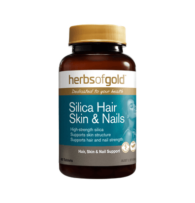 Herbs of Gold Silica Hair Skin & Nails is a high-strength, comprehensive formula that supports the health of connective tissue including hair, skin and nails.