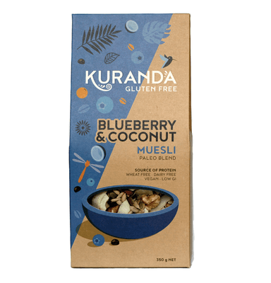 Sunflower seeds, pepitas, almonds, dried blueberries (9%), walnuts, cashews, organic coconut (8%)