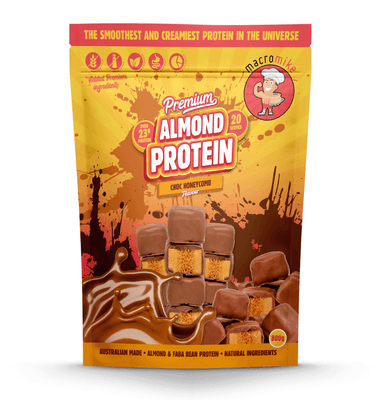 MACRO MIKE Premium Almond Protein Choc Honeycomb is the smoothest and creamiest Almond Plant Protein in the Universe.