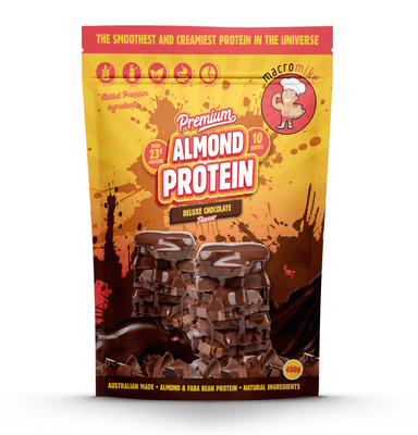 MACRO MIKE Premium Almond Protein Deluxe Chocolate is setting the new standard in Plant Based / Dairy Free Protein and we absolutely cannot wait for you to try this. If you’re still not convinced or are scarred from previous false promises from other retailers grab one of our sample packs. We’re not the type of company that’s scared to offer sample packs as we know you’ll LOVE THIS. You’ll notice a new look and feel to this product. We’ve put a-lot of time and effort into creating a more affordable yet still equally as delicious product for you to enjoy.