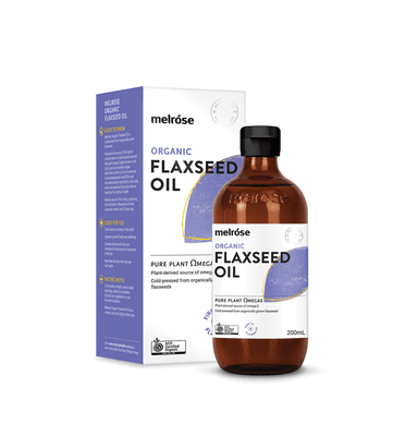 Melrose Flaxseed Oil is cold-pressed from Australian flaxseeds, offering high ALA omega-3s. It's a vegan alternative to fish oil with a creamy, nutty flavor.