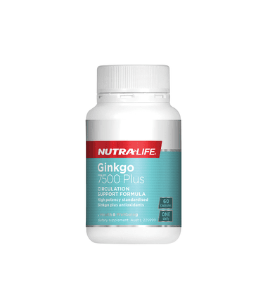 High potency circulation support formula. Made with standardised Ginkgo plus antioxidants, Nutra-Life Ginkgo 7500 Plus supports circulation, particularly to the hands, legs and feet, as well as assists with memory and cognitive function.
