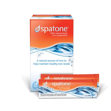 Martin & Pleasance Spatone Liquid Iron is a 100% natural liquid iron supplement to help maintain healthy iron levels. Each sachet contains 25mL Trefriw Wells mineral water equivalent to 5mg elemental iron as ferrous iron (Fe²⁺).