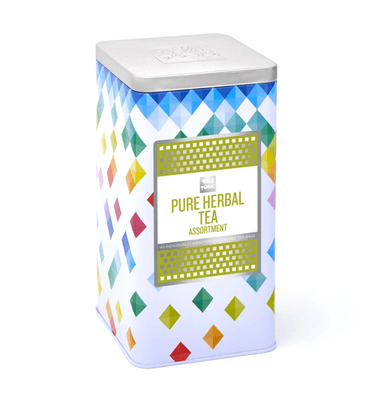 A colourful array of our Herbal Tea Combination in a tall display tin. Contains a mixture of 40 individually wrapped, unbleached, herbal teabags. Spoil someone special with a selection of herbal teas!