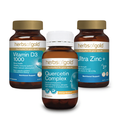 The Protection Pack: Herbs of Gold Zinc, Vitamin D3 and Quercetin Complex.