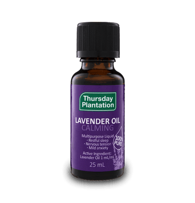 Thursday Plantation Lavender Oil 100% Pure 25ml contains pharmaceutical grade Lavender oil. Lavender oil is traditionally used in aromatherapy to relieve nervous tension and sleeplessness. Thursday plantation lavender oil can be used to help calm, soothe and relax the mind and body. It may also improve sleep hygiene and provide a more restful sleep. Lavender oil is well known effects in times of heightened stress, it works to balance emotions and provide temporary relief from headaches.