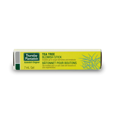 Thursday Plantation Tea Tree Blemish Stick 7ml is a unique blemish stick, which is conveniently invisible. A combination of Tea Tree Oil, Vitamin E and Spearmint Oil to clear skin blemishes. The power of 100% pure Australian Tea Tree Oil, a natural antibacterial ingredient helps remove a build-up of bacteria from skin and control breakouts.