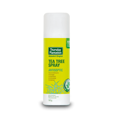 Thursday Plantation Tea Tree Spray 140g contains Australia’s natural antiseptic – Tea tree oil.