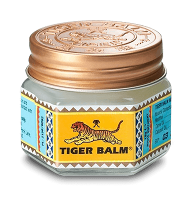 Tiger Balm White 18g. Tiger Balms unique formulation of herbal ingredients provides fast, safe and effective relief from minor headaches, muscular tension, nasal congestion, backaches, arthritis and joint pains. Tiger Balm is a traditional analgesic ointment used as a multi-purpose topical treatment for minor aches. Tiger Balm contains a unique blend of the finest quality essential oils. The active ingredients include camphor, menthol, cajuput oil, mint oil and clove oil. Tiger Balm Red also contains cassia oil.