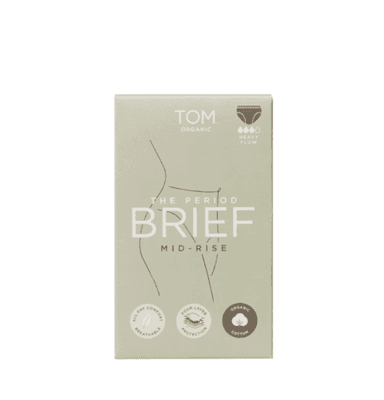 TOM Organic midi period briefs absorb up to three regular tampons' worth of fluid. Perfect to wear overnight, on heavy flow days or as back-up layer of protection for a cup or tampon.